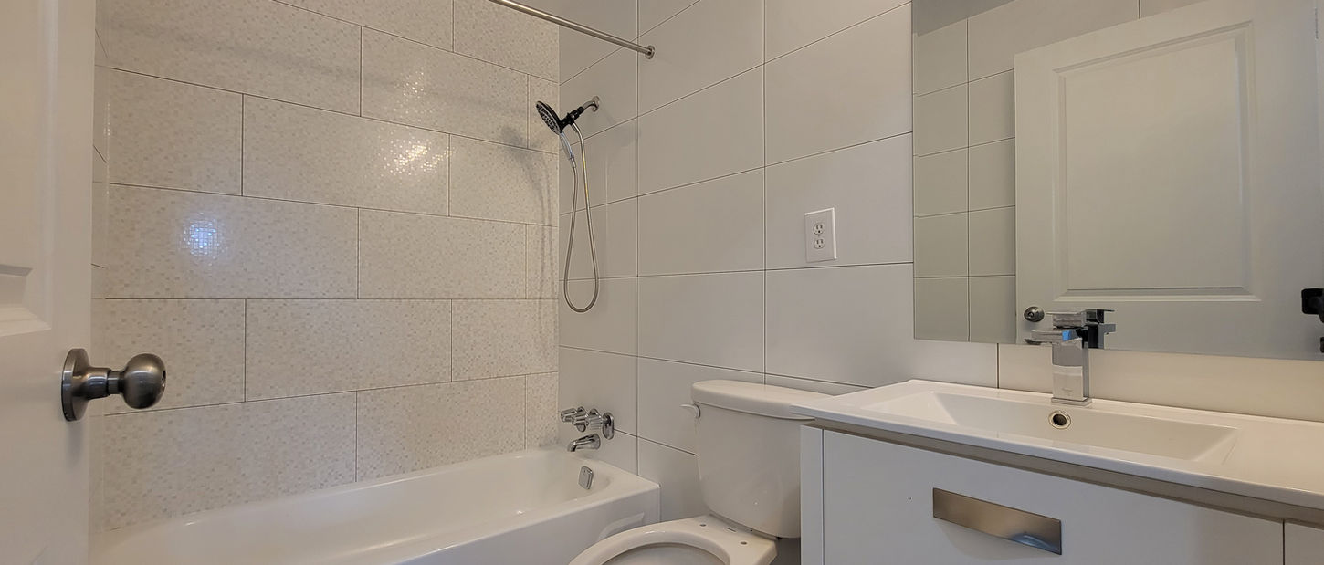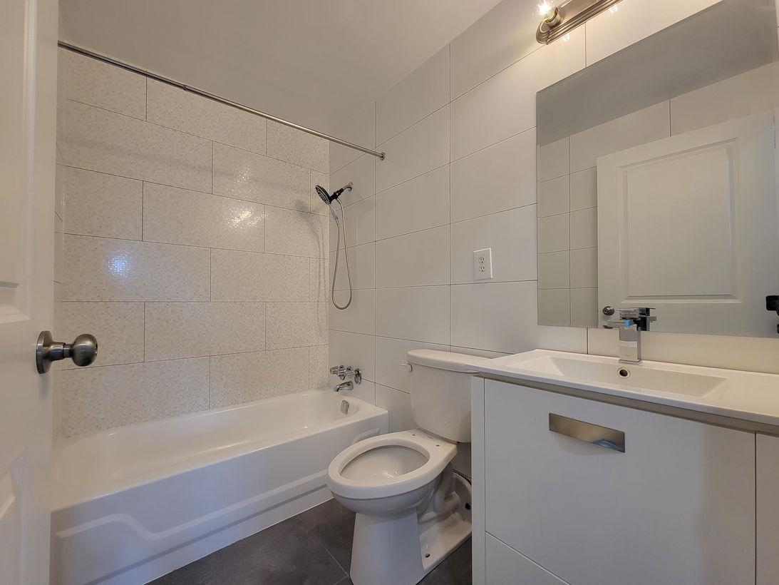 The spacious and bright master bedroom is ergonomically placed to maximize privacy and take advantage of eastern exposures and is outfitted with a his and her closet. The spa-like restroom juxtaposes modern shapes and glossy finishes with matte black fixtures and organic elements to create unexpected, harmonious environments you’ll love to linger in. A large entry closet and linen closet add the utmost convenience to this beautiful, brand-new apartment.